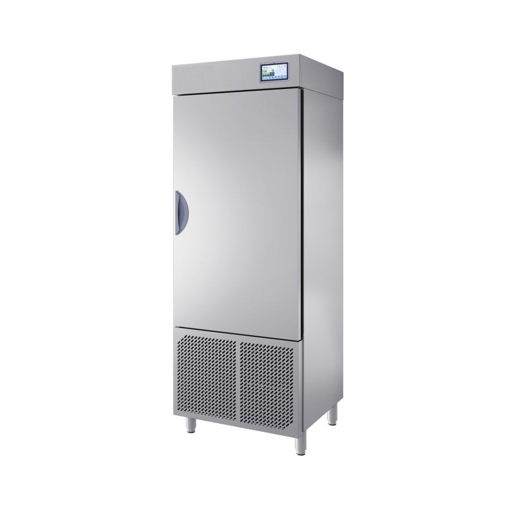 Dimensioni Esterne (L-P-H) 770x800x2025h | Potenza e Alimentazione 400V - 4430 Watt | Capacità 60kg / +3C° oppure 45kg / -18C° | Griglie 15 x GN 1/1 o 60x40 cm | Sonda al cuore con spillone riscaldato | Sbrinamento ad inversione di ciclo