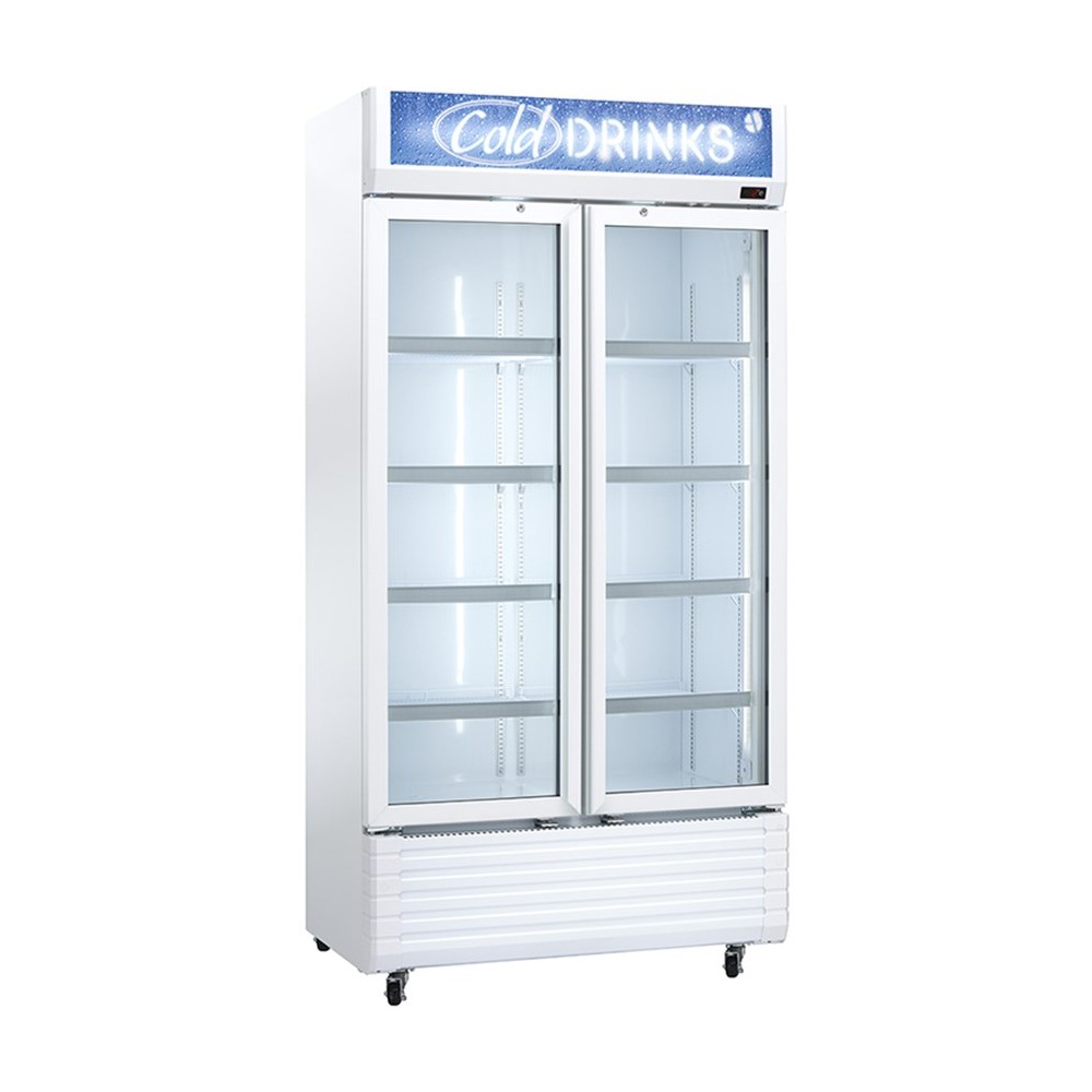 Struttura esterna in acciaio verniciato bianco pannello posteriore in plastica struttura interna in acciaio verniciato bianco refrigerazione ventilata gruppo refrigerante incorporato centralina digitale spessore isolamento 44mm evaporazione automatica dell'acqua di condensa porta a doppio vetro non reversibile ventola anti appannamento vetro esterno porta luce interna 3 strisce led griglie con portaattrezzi removibile porte con molla di chiusura serratura con chiave 4 ruote girevoli di cui 2 con freno