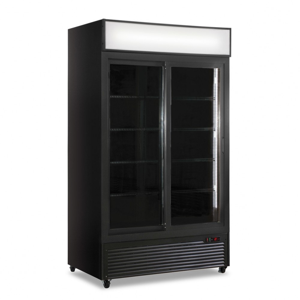 Frigo Vetrina Bibite - Nero - 832 Litri - [0 +10C°] - Doppia Porta Scorrevole e Cassetto Retroilluminato