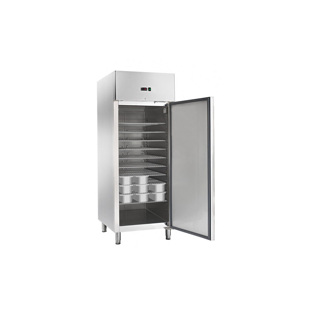 Classe Energetica D | Alimentazione 230/1N/50 520 Watt | Temperatura -18 -22 C° | Refrigerante R290 | Temperatura e Umidità MAX +40 °C / 60% HR | Dimensioni 740x990x2010h | Dimensioni Interne 624x845x1390h | Capacità 733 Litri | Peso 176 Kg | 10 griglie plastificate 60x80 cm - 10 coppie di guide