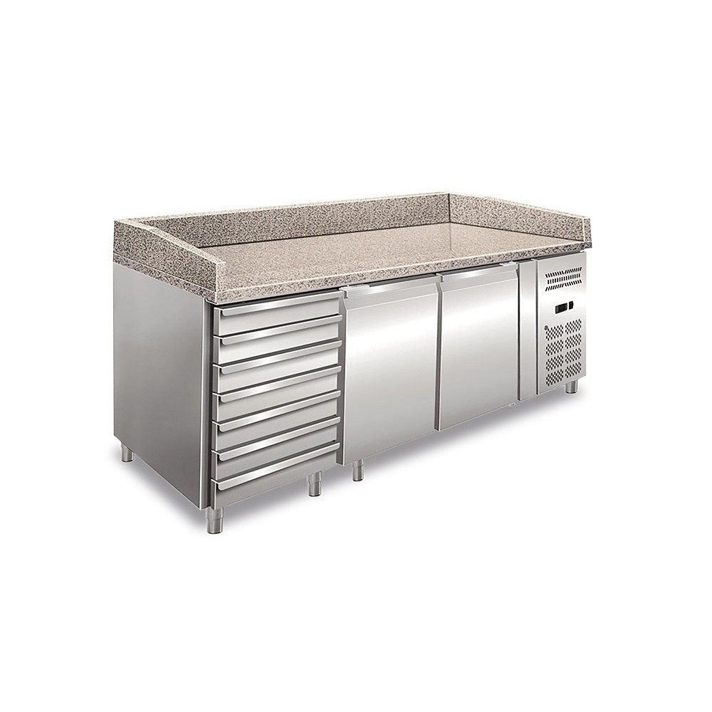 Banco Pizza Ventilato - 428 Litri - 2 Ante e 7 Cassetti - Piano in Granito