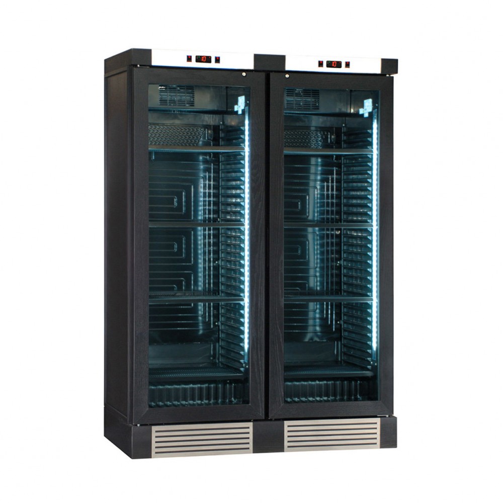 Temperatura [+4 +18°C ] [ +16 +10 +5 C°] | Dimensioni Esterne (LxPxH) 1315 x 675 x 1880 mm | Dimensioni Imballo (LxPxH) 1345 x 740 x 2030 mm | Volume Netto lt 604 Lt | 320 Watt 220V | Led | 10 mensole da 513x410 mm | 174 Kg | 4 piedini 4 ruote | regolatore temperatura elettronico