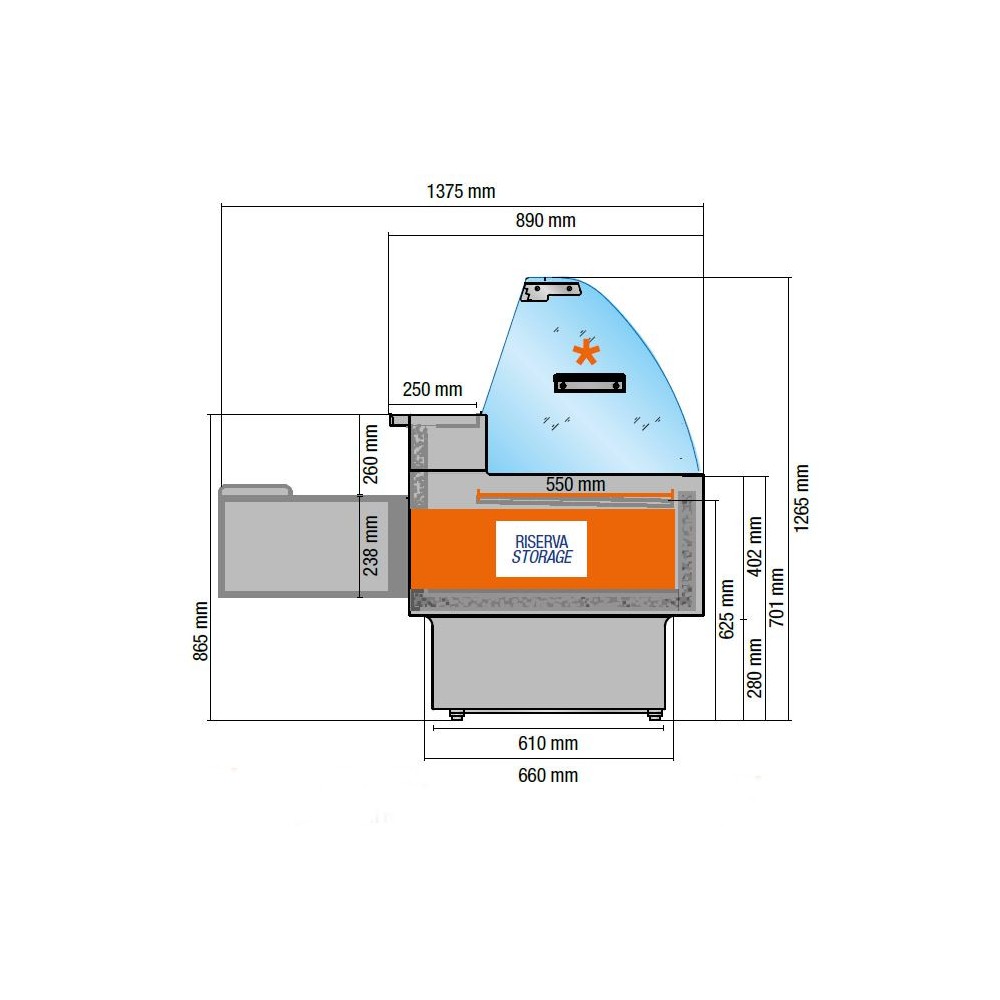 • Superficie espositiva in acciaio inox (profondità 895 mm)