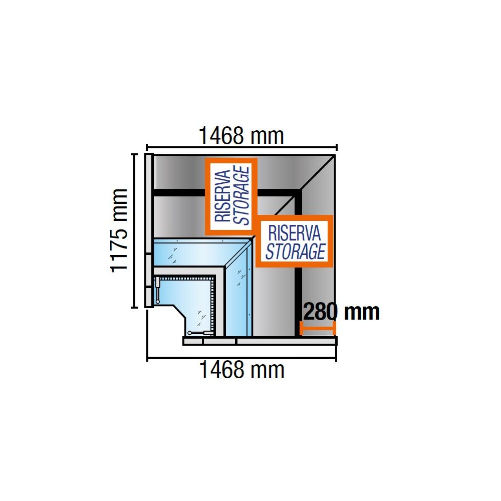 Dimensioni: 1468 x 1468 x 1175 mm | 370 Watt | Superfice 1,54 m2