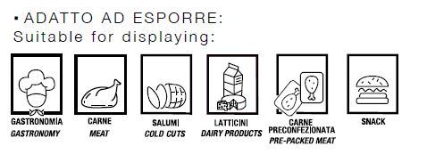 • Superficie espositiva in acciaio inox (profondità 895 mm)