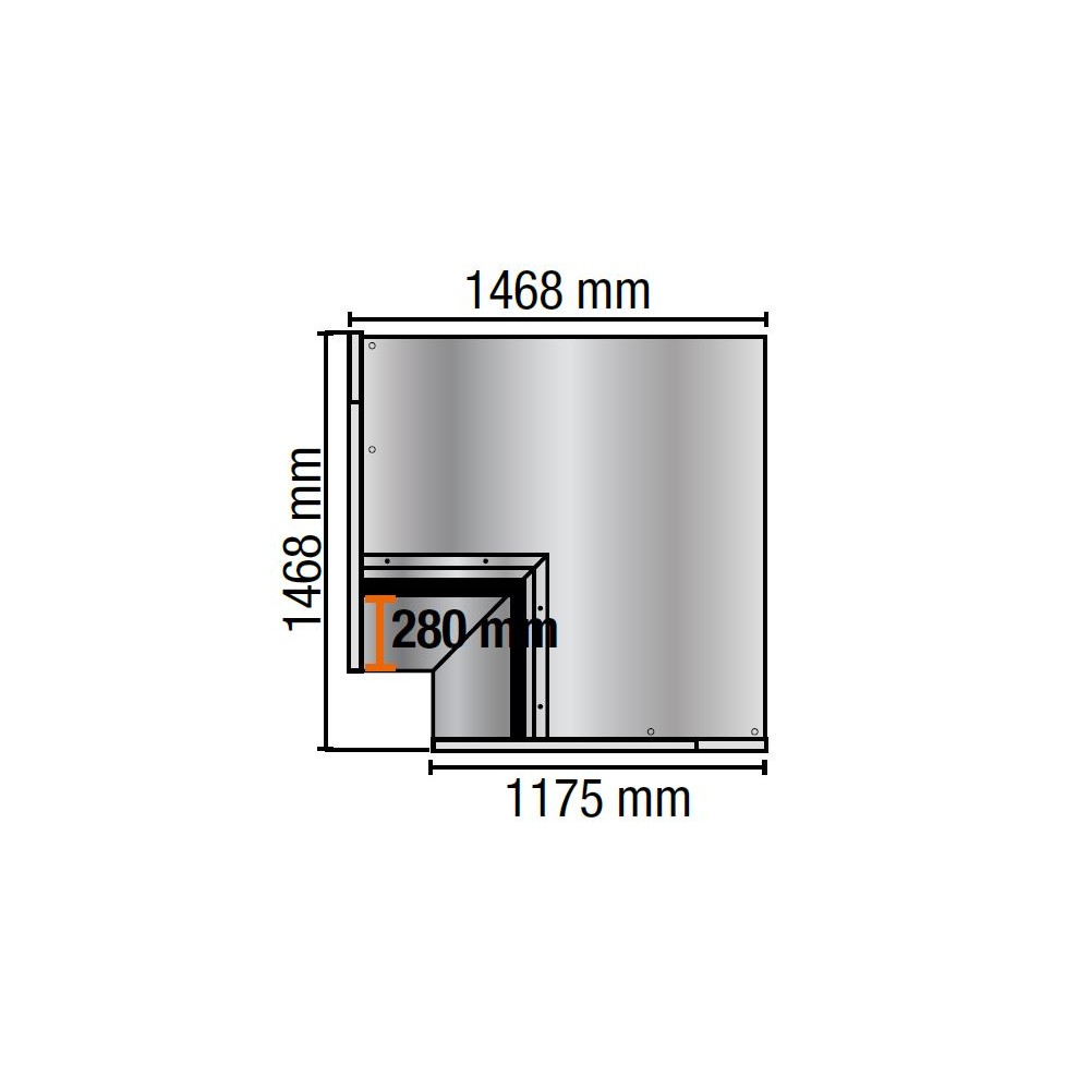 Dimensioni: 1468 x 1468 x 1175 mm | 370 Watt | Superfice 1,54 m2