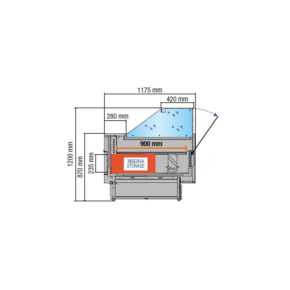Dimensioni: Profondità 1175mm Altezza 1200mm Lunghezza 1520mm |  Superficie espositiva 1,53 m2  | 220V