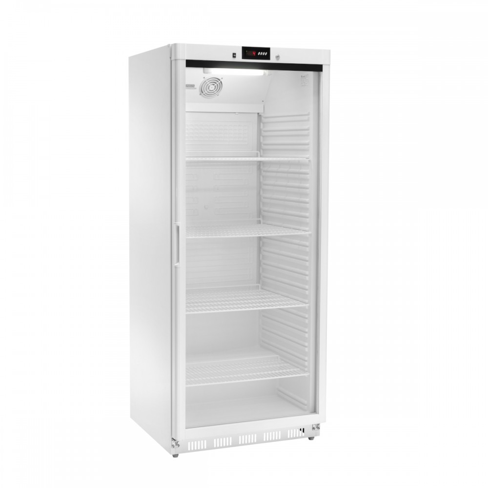 Struttura esterna in acciaio verniciato bianco. Struttura interna in ABS. Porta a doppio vetro e cornice porta in plastica bianca. Statico a piastra con ventilatore per uniformare la temperatura. Termostato digitale nella porta. Isolamento 40mm. Evaporazione automatica. Chiusura porta a chiave. Guarnizione magnetica