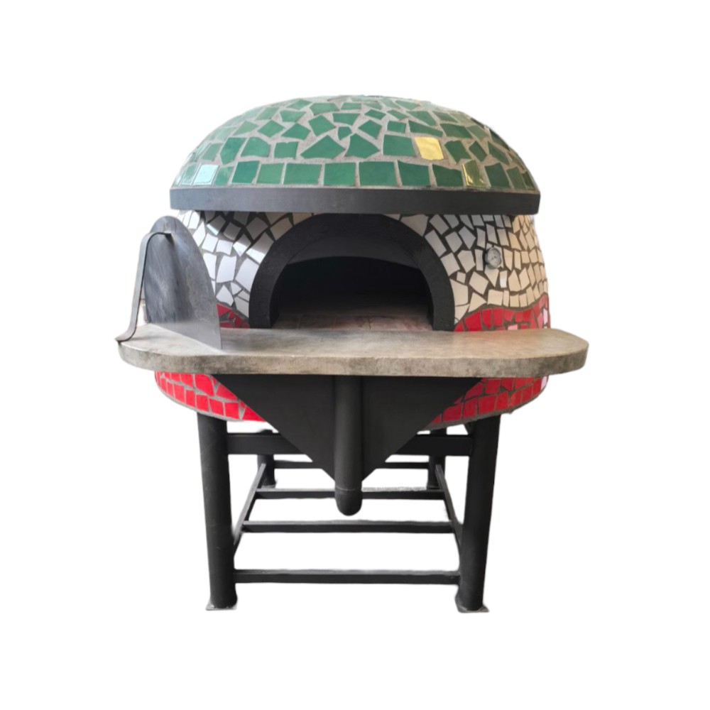 Dimensioni Esterne (L-P-H): 126x156x180 cm | Dimensioni Interne (Diametro): 80 cm | Numero Camere: 1 | Capacità: 3-4 Pizze | Peso: 1000 Kg (con rivestimento in pietra 1300 kg)