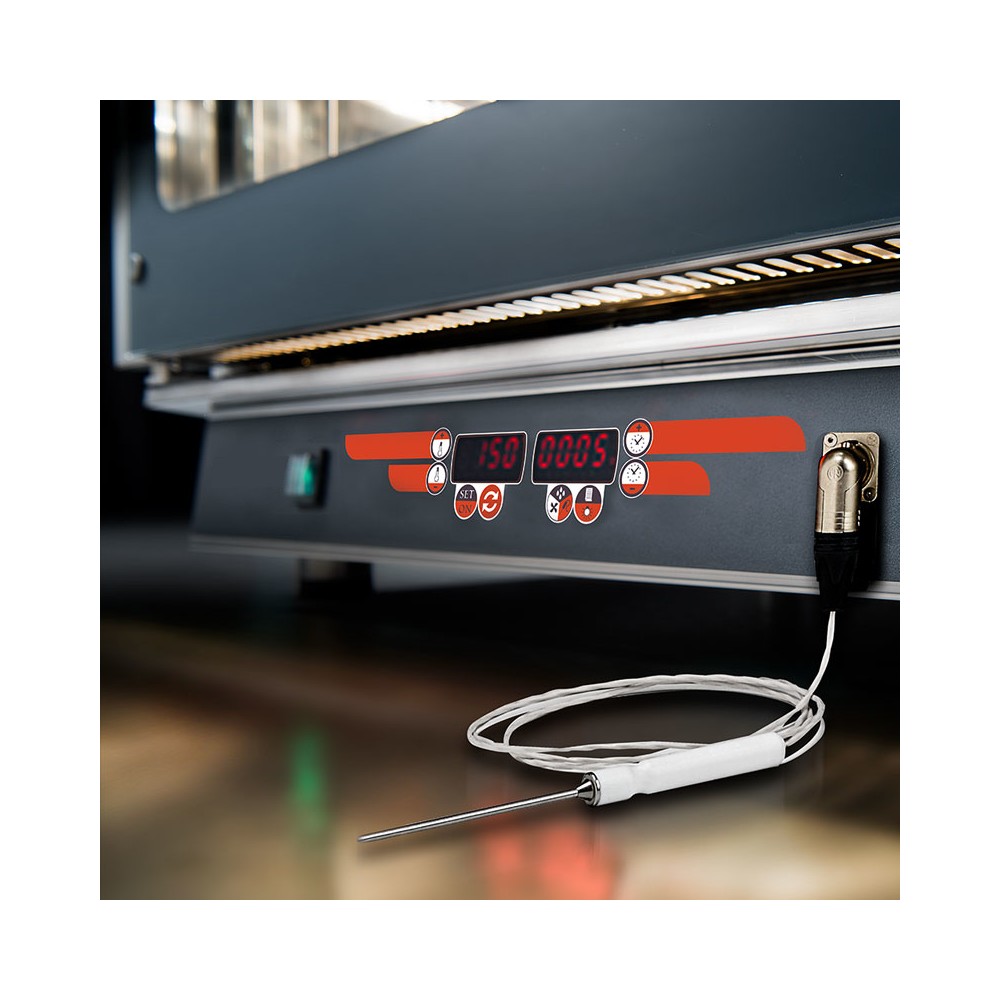 10 Teglie - 600x400 mm / 7 - GN 1/1 | Distanza teglie 80 mm | Dimensioni Camera 680 x 480 x 840 mm | Dimensioni esterne 840 x 920 x 1155 mm | Potenza 12,7 kW 220V/380V | Peso 150 kg | PORTA A BANDIERA SX o DX