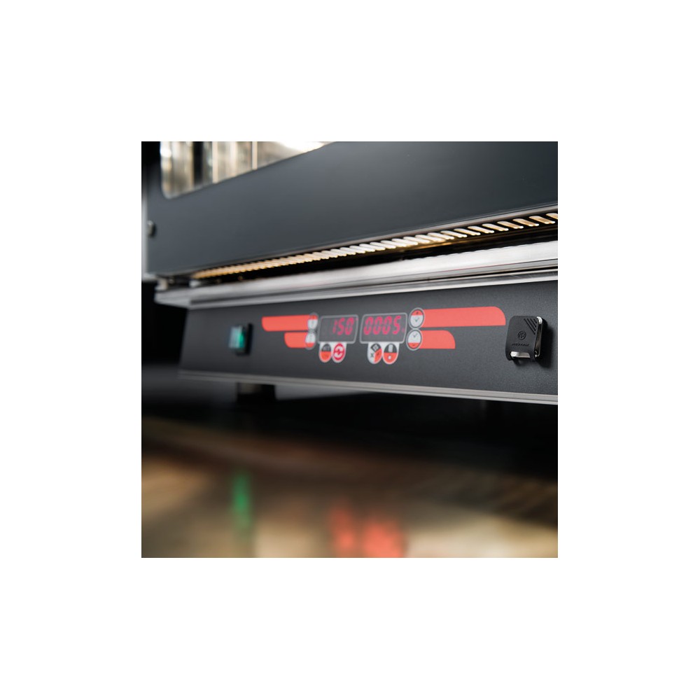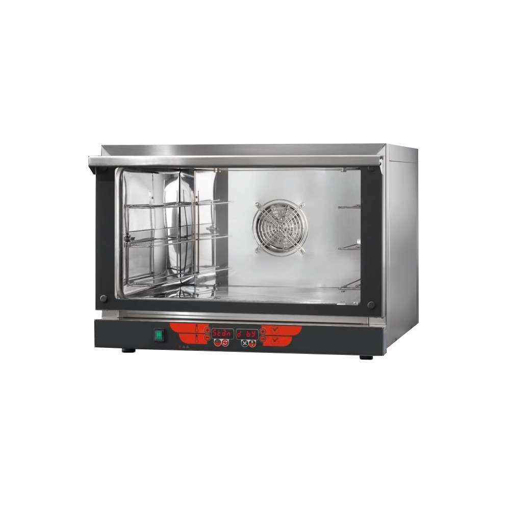 3 teglie o griglie 600 x 400 mm o GN 1/1 | Distanza teglie 105 mm | Dimensioni Camera 650 x 478 x 350 mm | Dimensioni esterne 780 x 795 x 560 mm | 5,4 kW 380V | Peso 55 kg