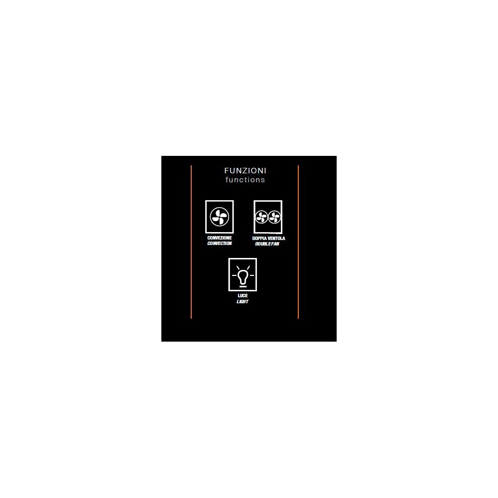 3 - 600 x 400 mm | Distanza teglie 105 mm | Dimensioni Camera 650 x 459 x 350 mm | Dimensioni esterne 775 x 720 x 560 mm | 3,15 kW 220V | Peso 55 kg