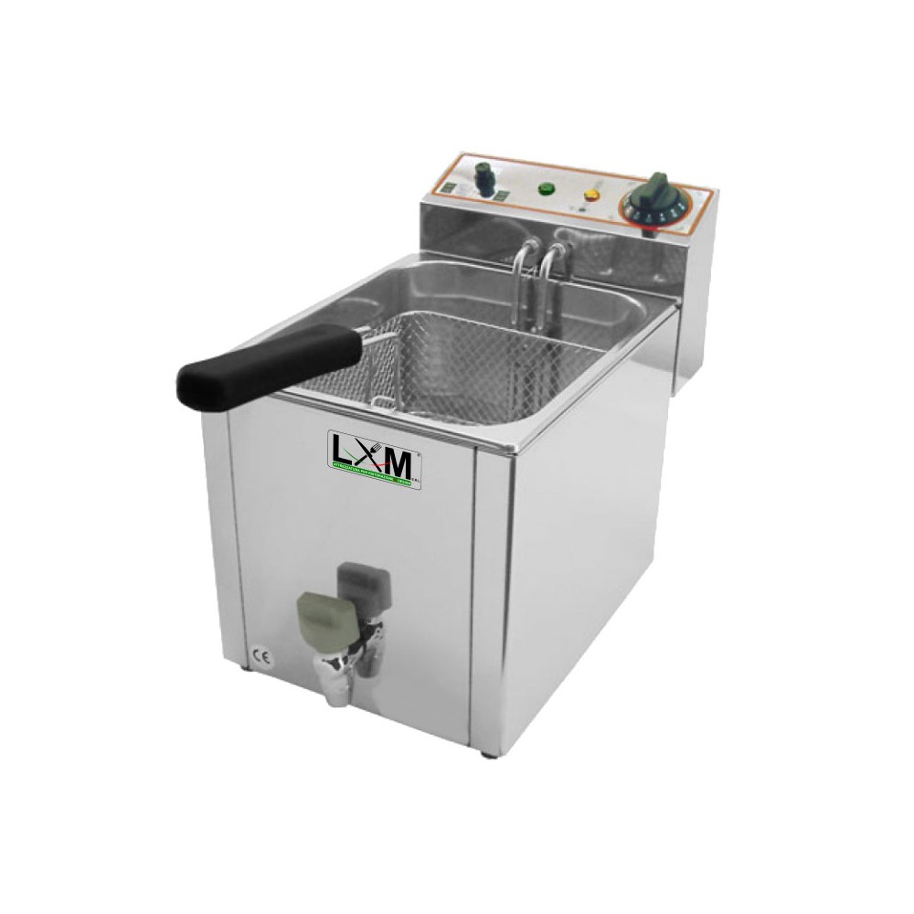 Modello: FR 8 LT. | Potenza: 3000 Watt / 230 V | Capacità olio: 8 Lt. | Peso: 7 Kg. | Rubinetto per scarico olio | Temperatura: 50°C ~ 190°C | Termostato di sicurezza ( 240°C) | Cestello in nickel dim. 215X240x105/135h mm con piedini | Dimensioni: 260x400x345 mm | Dimensioni imballo: 295x440x400 mm