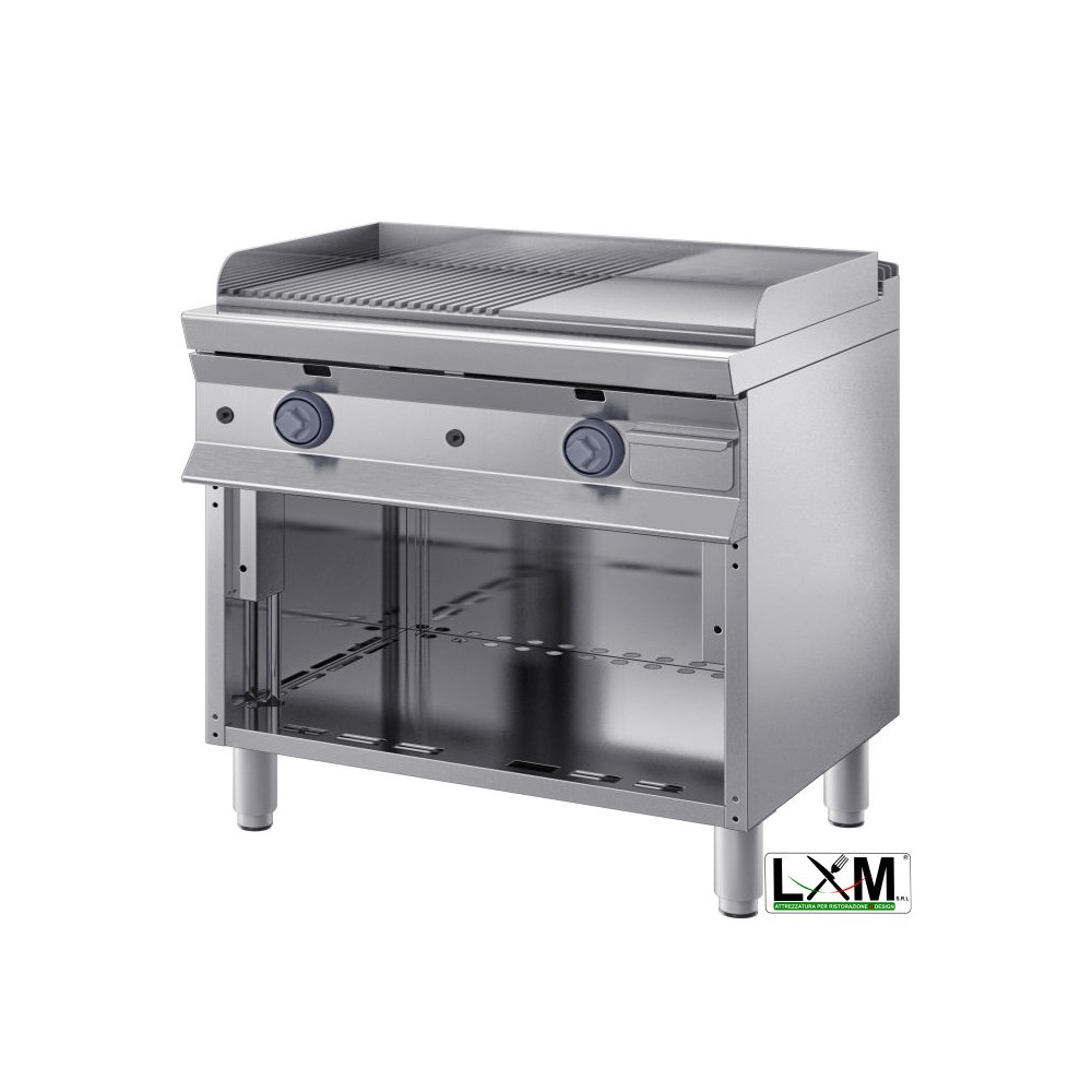 FryTop a Gas con vano aperto prof 90 cm - Piastra Liscia e Rigata - 18 KW