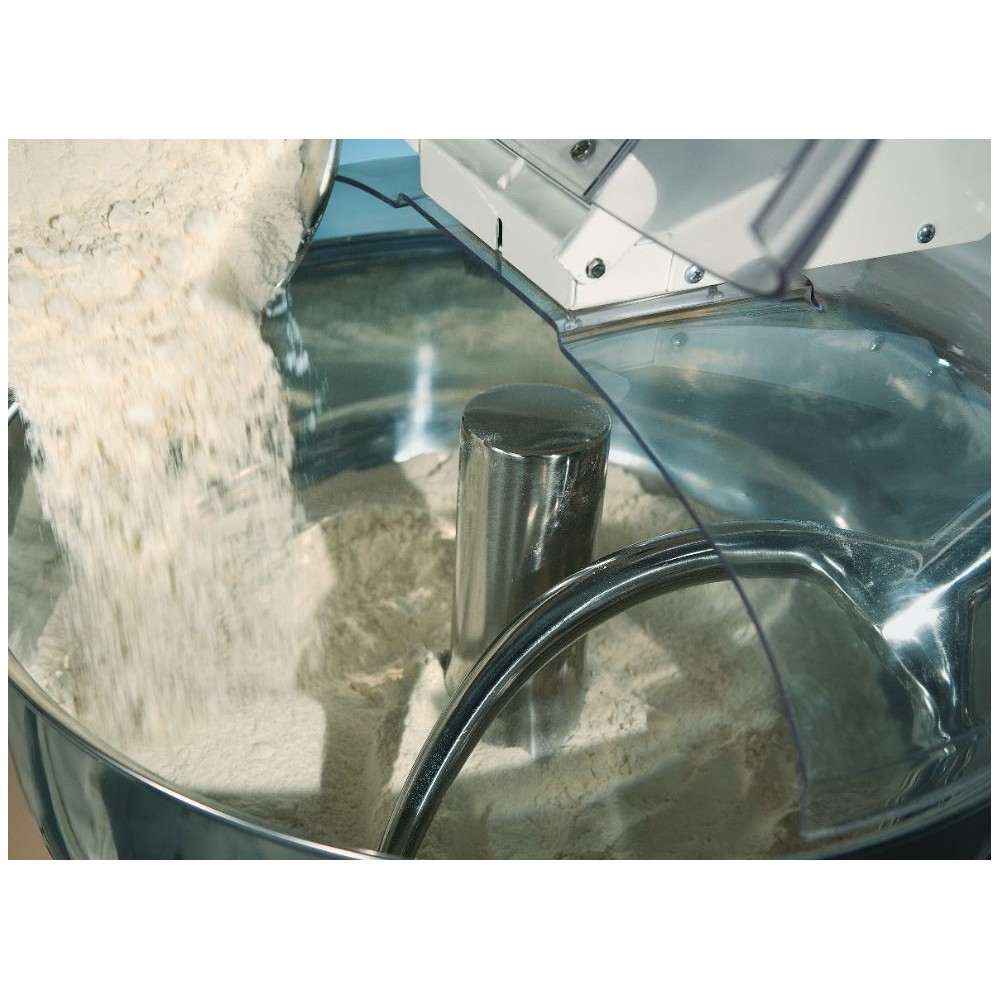 Capacità 80 Kg | Capacità Farina 53 Kg | Volume Vasca 93 Litri | Potenza 1.1 - 1.5 Kw | PEso 290 kg | Dimensioni 1110x744xh1025 mm