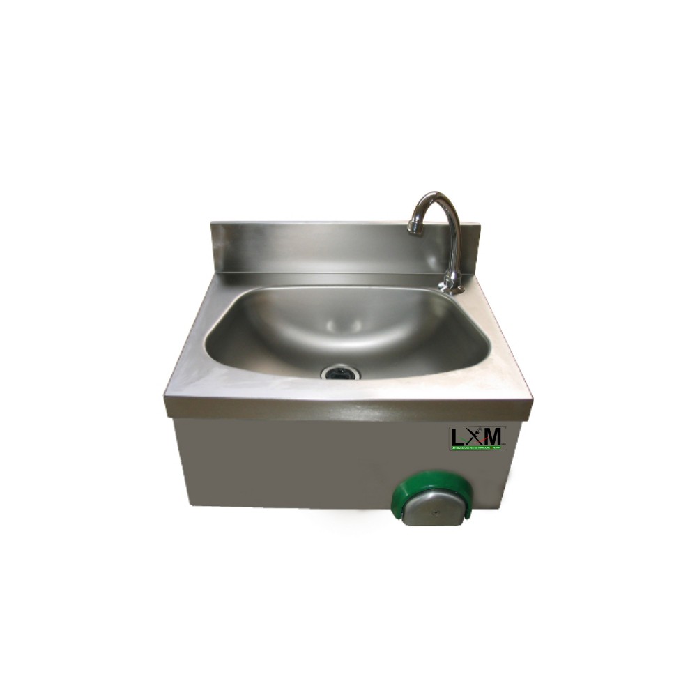 Lavamani in acciaio inox completo di miscelatore a ginocchio temporizzato e bocca di erogazione girevole cm 50 x 40 x 33.5h cm