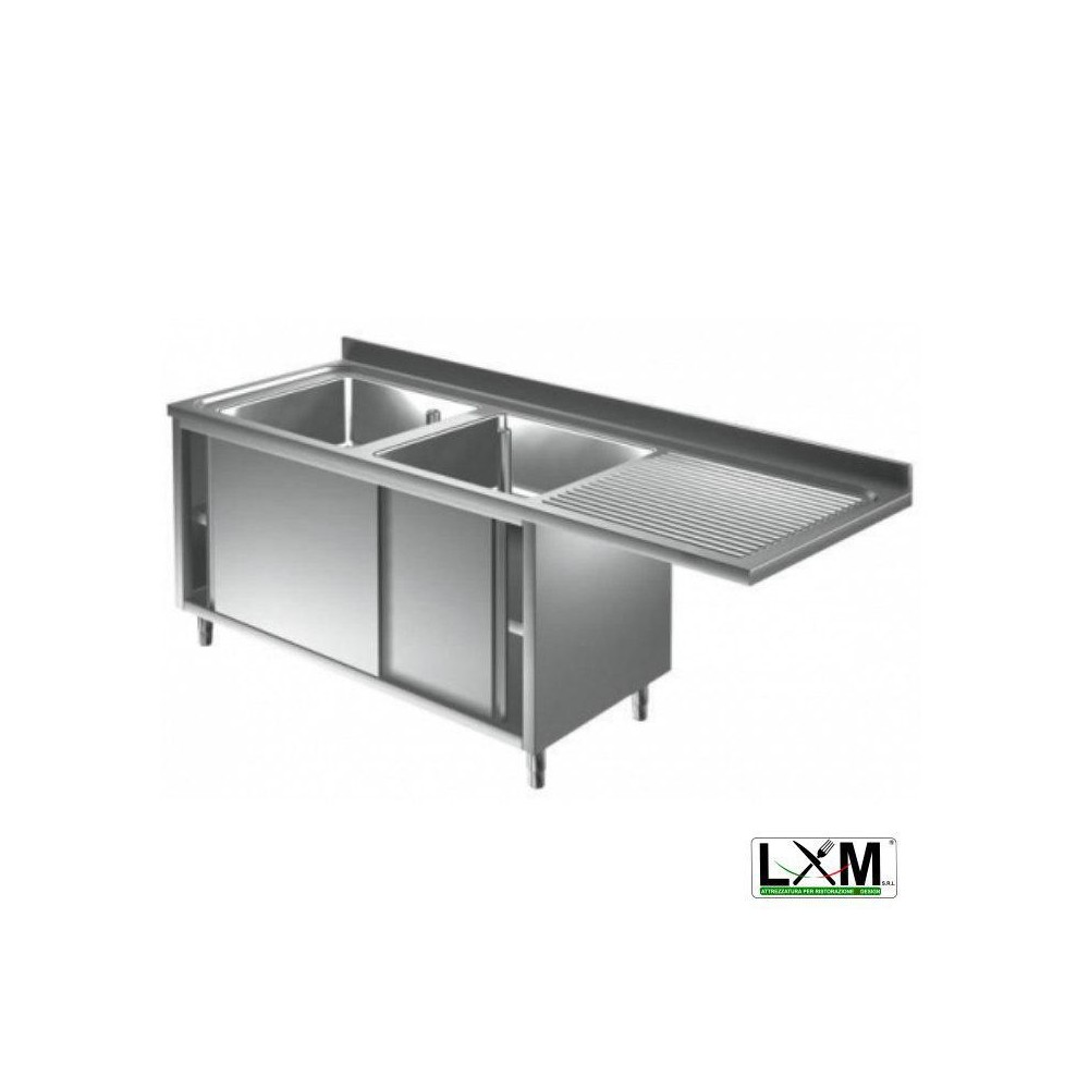 Lavatoio armadiato con porte scorrevoli in acciaio inox a 2 vasche con sgocc. a destra e vano lavastoviglie prof. 60 cm Visualizza ingrandito