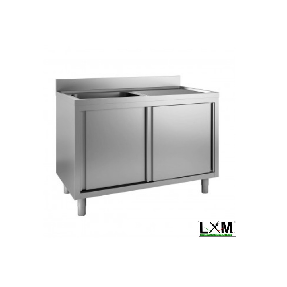 Lavatoio armadiato in acciaio inox ad 1 vasca con sgocciolatoio a destra e porte scorrevoli prof. 70 cm