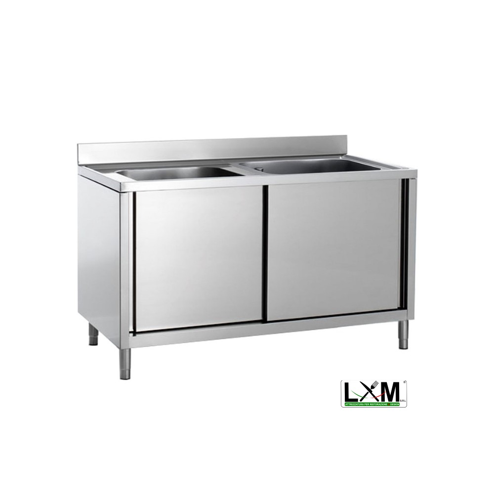Lavatoio armadiato in acciaio inox con porte scorrevoli a 2 vasche prof. 60 cm