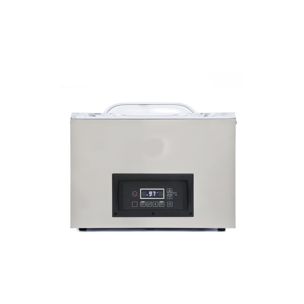Le confezionatrici sottovuoto professionali consentono di prolungare la durata di conservazione degli alimenti crudi o cotti, senza perdita di peso, senza che si secchino o che si mescolino sapori e odori. Sia la struttura che la vasca sono in acciaio inox e la barra di sigillatura, senza fili, consente una pulizia della vasca facile e comoda. Tutti i modelli sono equipaggiati con pompe Busch e offrono doppia sigillatura o doppio cordone di tenuta per garantire la durata del confezionato. Equipaggiati con pannello dei comandi digitale, il vuoto è controllato con un sensore o microprocessore di alta precisione, eliminando le regolazioni del tempo e le prove inutili di confezionamento: il tempo necessario per ottenere il vuoto è il migliore per il prodotto da confezionare, indipendentemente dal suo volume. Per questo motivo, si elimina il manometro, che si sostituisce con un pannello con un display che indica la percentuale in modo preciso. Le confezionatrici offrono sicurezza nel confezionamento dei liquidi, in quanto permettono di fissare un livello di vuoto adeguato per il confezionamento dei liquidi a temperatura ambiente senza rischio di schizzi o di fuoriuscite. Inoltre, tutti i modelli sono preparati per collegare il kit di vuoto esterno Vac-Norm per il confezionamento sottovuoto in contenitori specificamente progettati per questo scopo. Tutti i modelli offrono prestazioni speciali come l’opzione di effettuare cicli di confezionamento esclusivamente per la tenuta dei contenitori regolando un vuoto inferiore, o la marinatura dei prodotti premendo il tasto pausa che consente di fermare la fase di vuoto e di ripartire dallo stesso punto. Tutti i modelli della gamma dispongono di decompressione a impulsi che protegge il prodotto da confezionare ed evita eventuali rotture del contenitore per il vuoto. Le confezionatrici sottovuoto professionali dispongono di un programma di asciugatura della pompa, che consente di prolungarne la vita utile, così come un contatore di lavoro che consente di sapere quando è necessario sostituire l’olio.
