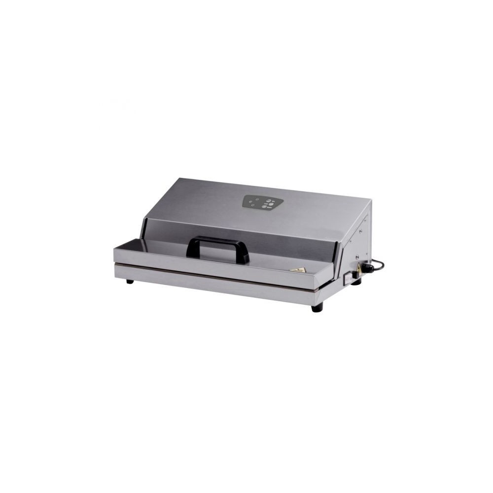 Confezionatrice sottovuoto ti aspirazione esterna. Controllo vuoto con sensore. Per buste goffate di diverse dimensioni. Funzionamento automatico o solo vuoto. Pompa autolubrificante senza manutenzione. 3 livelli di saldatura: regolando il tempo di saldatura à possibile sigillare buste per cottura sottovuoto.