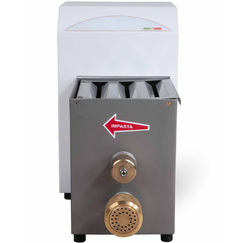 Costruita per soddisfare le esigenze dei palati più difficili. Robusta, adatta per ogni famiglia, di facile utilizzo, compatta e facilmente adattabile ad ogni design di cucina, dalla più moderna alla classica, non ingombrante e di facile pulizia. A seconda dei gusti, farro, farina 00, semola, integrale, segala etc. si possono ottenere diversi tipi di pasta. Utilizzando, passato di verdure varie, concentrato di pomodoro si può realizzare pasta di diversi gusti. Otterrete una pasta uguale a quella delle nostre nonne. Consigliata per gli amanti della BUONA pasta. Completa con nr.2 trafila di spaghetti e maccheroni.