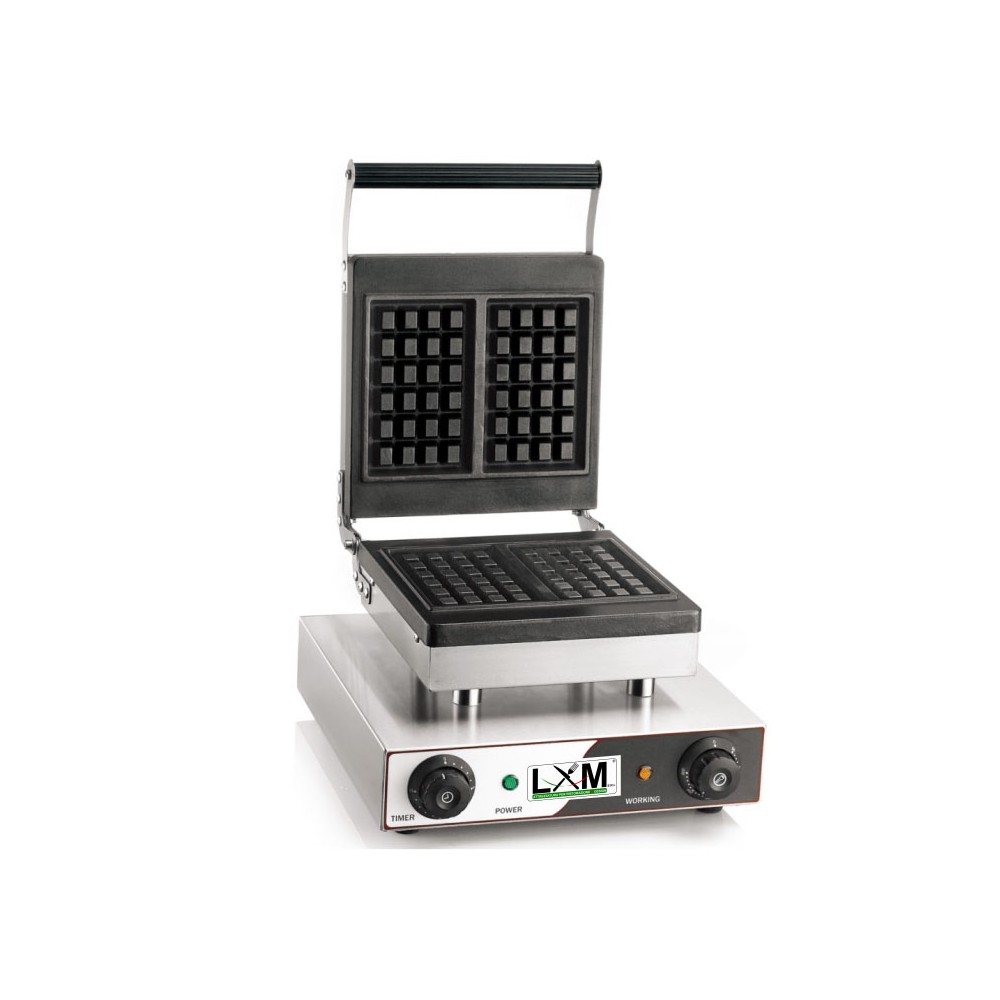 Modello: WF-E1 | Peso: 10,80 Kg | Potenza: 1500 W / 220-240V / 50-60 Hz | Temperatura: 50°C∾300°C | Funzione Timer: 0-15 min | Piastra di cottura antiaderente 250x250 mm | Struttura ed alloggiamento in acciaio inossidabile | Dimensione waffle: 165x100x32h circa mm, formato tradizionale belga | Dimensioni: 340x370x260h (550h aperta) mm | Dimensioni imballo: 390x430x320h mm