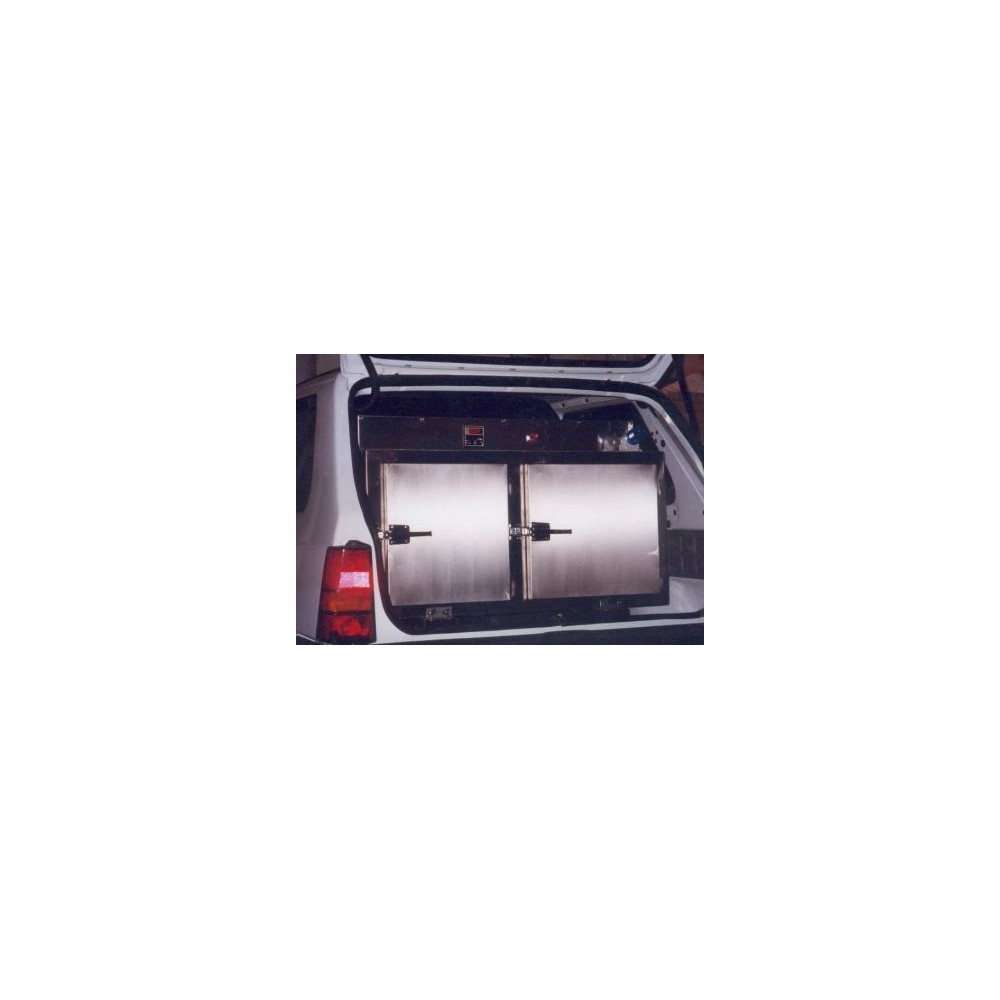 • Completamente in acciaio inox • Due camere indipendenti con regolazione termostatica della temperatura • Sportelli a battente • Resistenze corazzate in acciaio inox • Temperatura interna oltre 180°C • Perfetto isolamento per una maggiore tenuta termica • Alimentazione a richiesta (220V – 380V) • Misure a richiesta per ogni tipo di automezzo