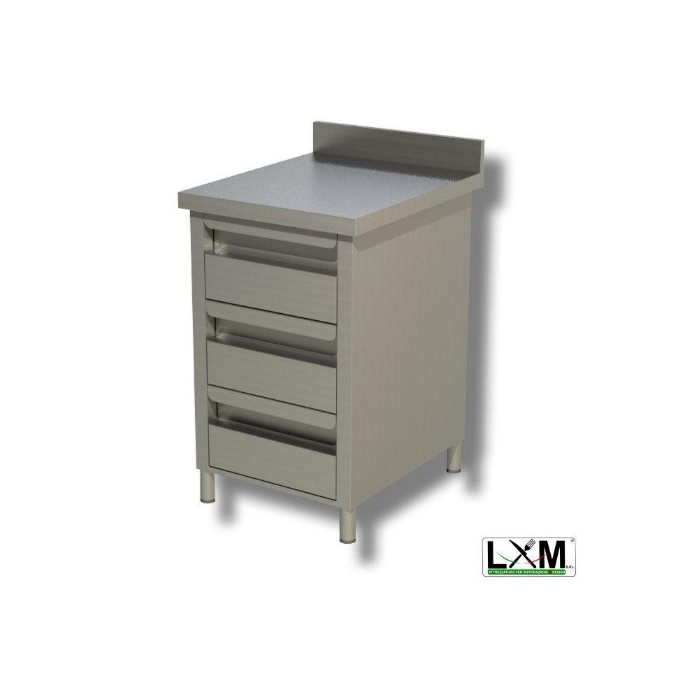 Cassettiera in Acciaio Inox - Con Alzatina - 600x700x850mm