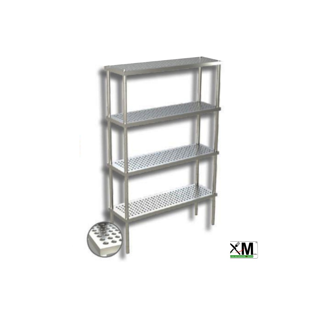 Scaffale in acciaio inox a 4 ripiani FORATI prof 40 H 180 cm
