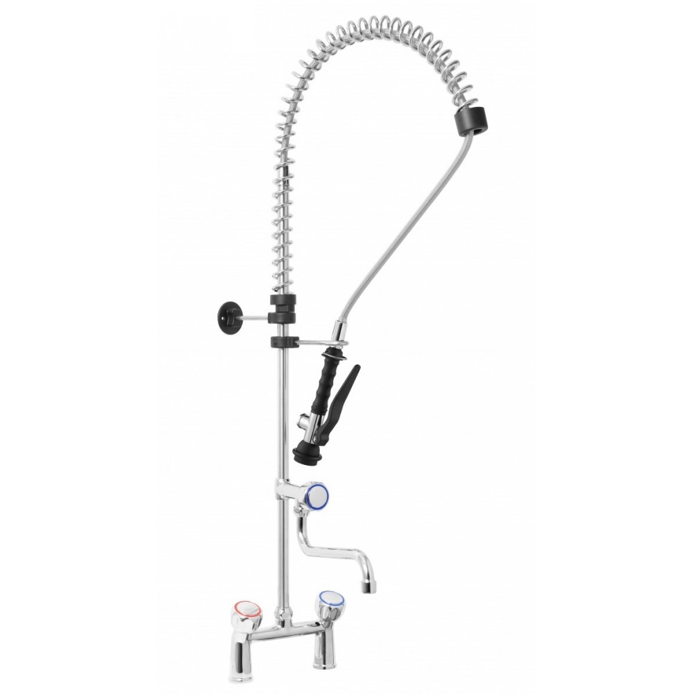GRUPPO DOCCIA PRELAVAGGIO BIFORO CON CANNA GIREVOLE A META' ASTA,MANIGLIA ROTONDA E DOCCETTA BASIC