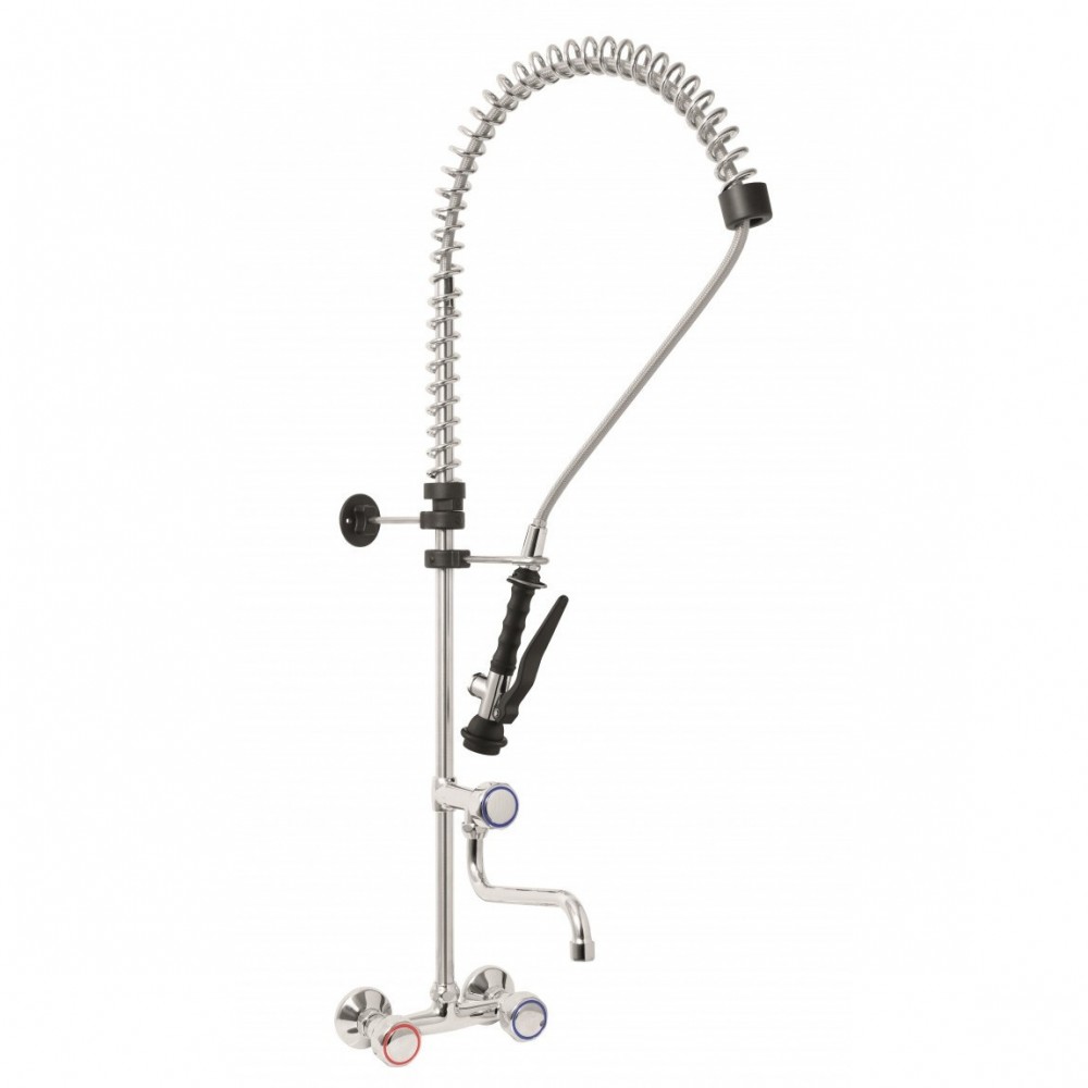 GRUPPO DOCCIA PRELAV. BIFORO A MURO CON CANNA GIREVOLE A META' ASTA, MANIGLIA ROTONDA E DOCCETTA BASIC