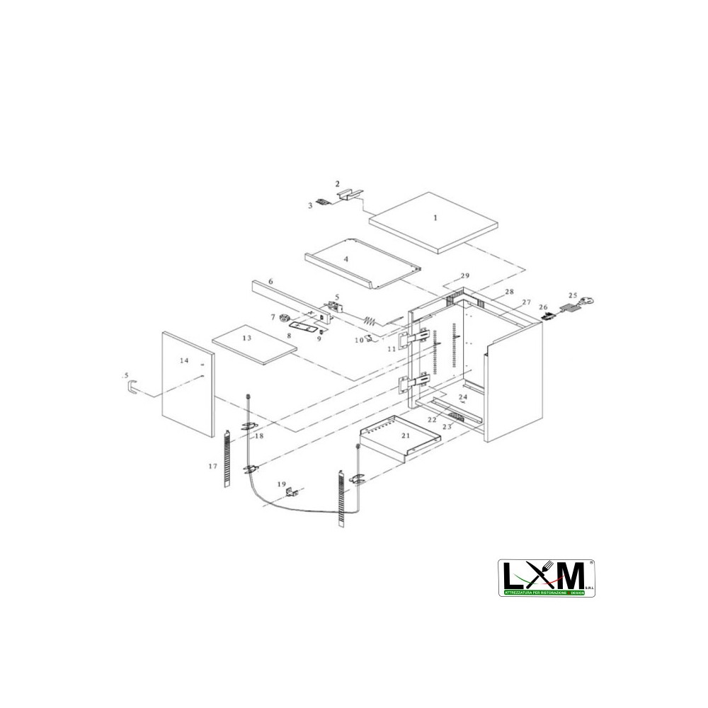 Potenza: 750 W / 220∾240V / 50∾60Hz | Peso: 32 Kg | Capacità: 55/60 piatti | Temperatura massima: 85°C | Telaio in acciaio inox | Dim. Interne: 430x425x755 mm | Dimensioni: 450x450x850 mm | Dimensioni imballo: 490x520x900 mm