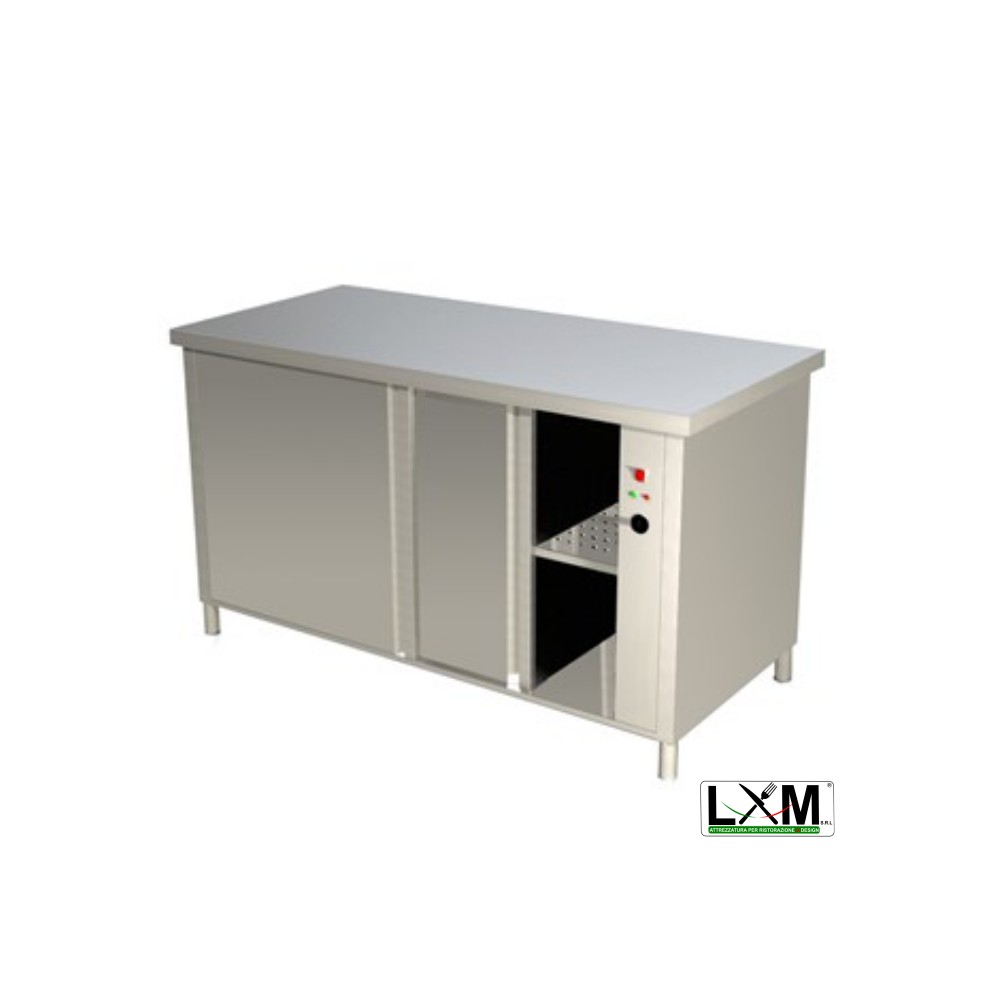 Tavolo da lavoro in acciaio Inox RISCALDATO con porte scorrevoli prof. 70 cm