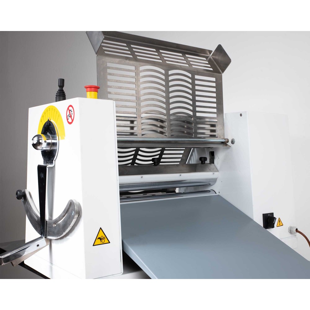 La macchina è stata disegnata e progettata per ridurre la pasta sfoglia allo spessore più idoneo per l’utilizzo in pasticceria e pizzeria. Robusta, resistente e compatta. Di facile impiego. Ideale per spazi ridotti. Caratteristica della macchina: lavora con 2 piani inclinati in teflon. Fornita di vasca per la farina.