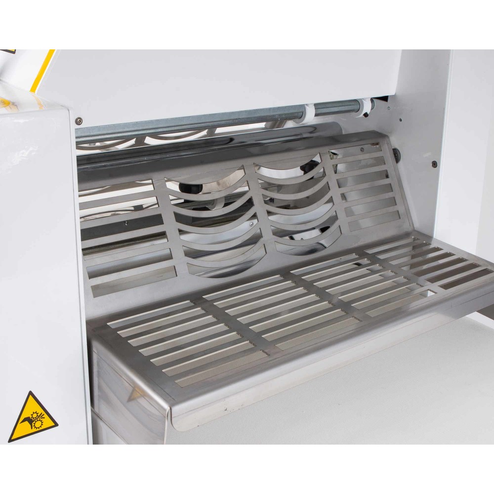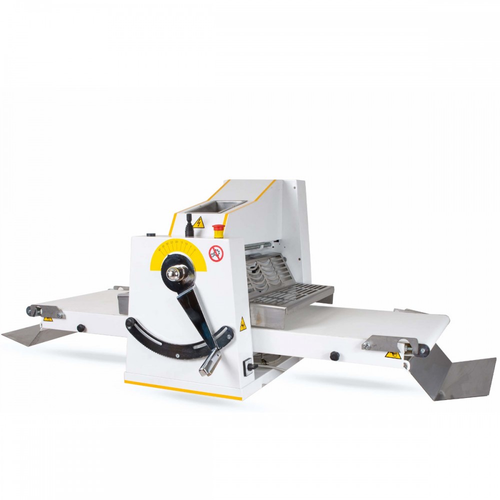 La piccola sfogliatrice da banco è studiata tenendo conto di tutti gli standard di sicurezza ma senza tralasciare i bisogni di tutte le categorie di ristorazione... dai piccoli fornai e pasticcerie agli hotel e ristoranti. Consigliata per chi ha pochi spazi a disposizione. Completa di:sotto piani, vaschetta raccogli farina, vasca per la farina e due raccogli pasta alla fine dei piani