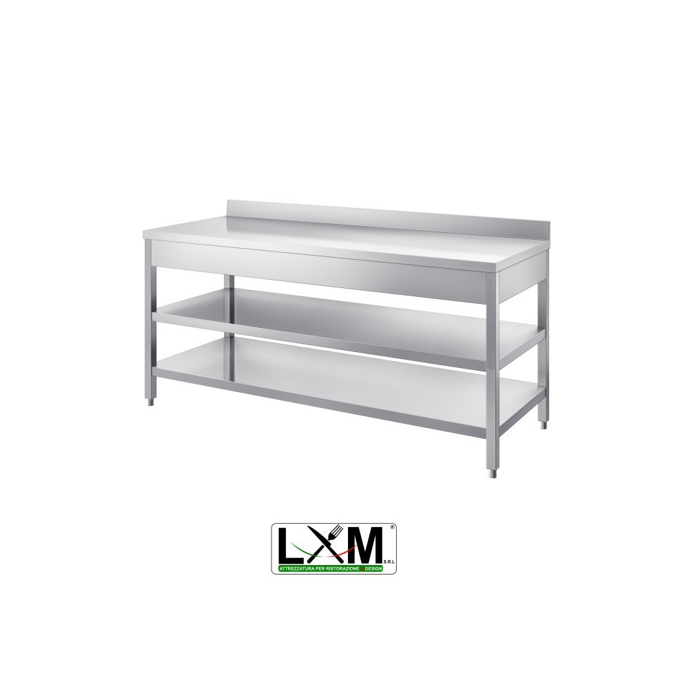 Tavolo in acciaio Inox su gambe - DUE RIPIANI - con Alzatina prof. 60 cm