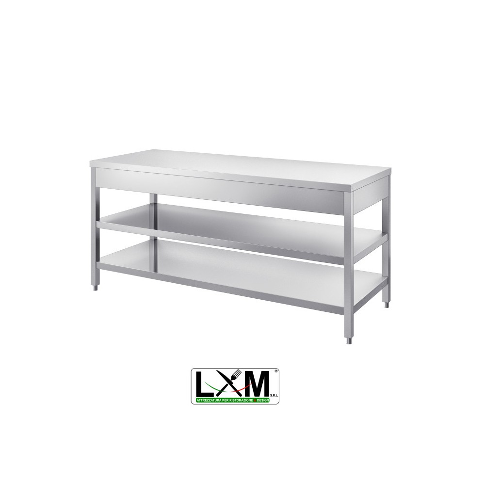 Tavolo in acciaio Inox su gambe - DUE RIPIANI - prof. 70 cm