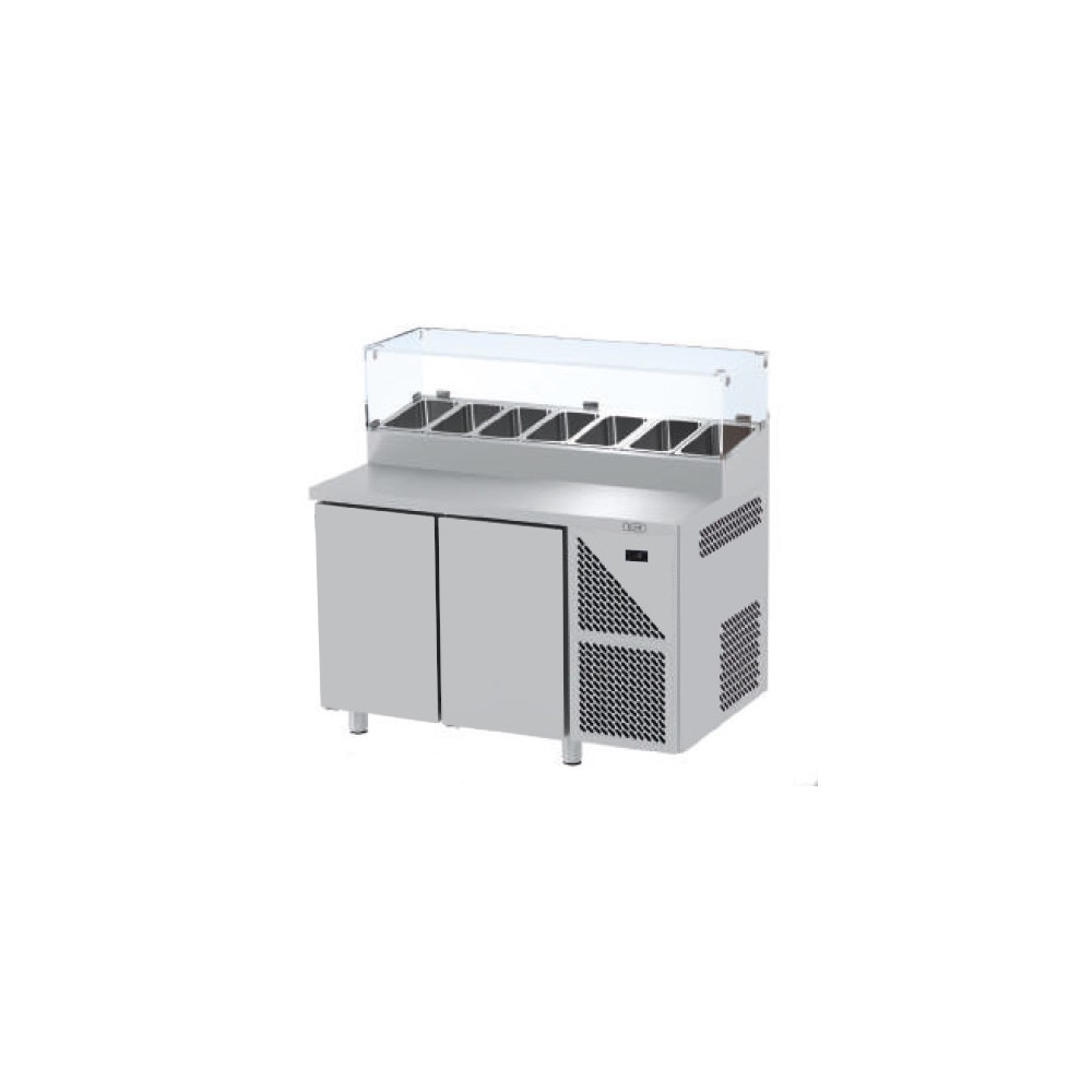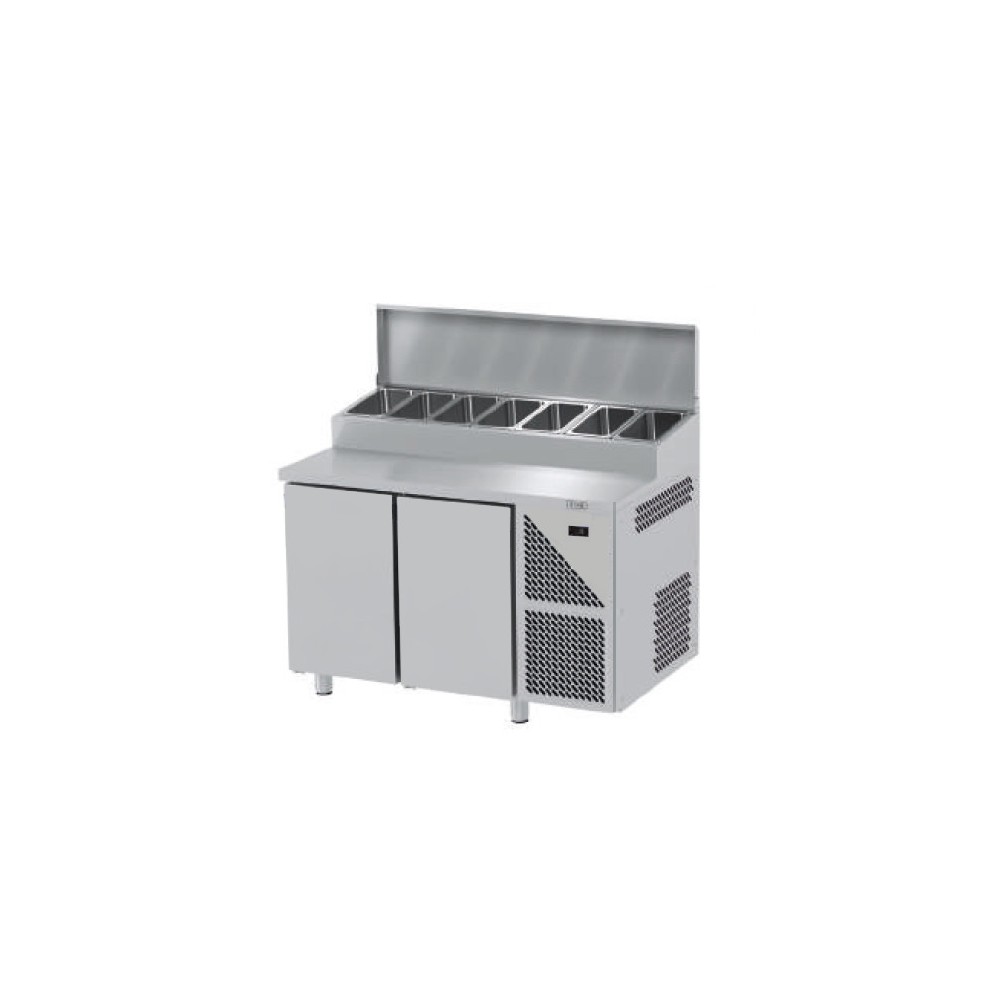 La linea tavoli Snack è sinonimo di eleganza, affidabilità, robustezza e praticità d’uso. I tavoli refrigerati Snack sono caratterizzati da un piano di lavoro in acciaio inox AISI 304 con raggiatura alla base dell’alloggio vaschette per una facile e veloce pulizia. La porta è dotata di maniglia ergonomica in tutta la sua larghezza. Sul pannello comandi laterale trova alloggiamento l’apposita mascherina che ospita il controllore digitale assieme agli interruttori di accensione/spegnimento ed eventualmente all’interruttore di accensione dell’illuminazione interna. La copertura delle vaschette è disponibile con coperchio in acciaio inox oppure con vetrina. Questi tavoli sono dotati di gruppo refrigerante a “monoblocco” facilmente estraibile e tropicalizzato, l’ambiente esterno di lavoro può arrivare ad una temperatura di +40/42°C con 65% di umidità relativa. La struttura interna ed esterna è in di acciaio inox. Porte con chiusura automatica e posizione di apertura fissa a 100°, guarnizione magnetica facilmente asportabile, angoli interni arrotondati per una agevole ed ottimale pulizia. Isolamento 60mm di spessore in poliuretano iniettato ad alta pressione senza presenza di CFC o HCFC. Rilevazione delle temperature mediante sonde NTC. Refrigerazione ventilata con gas R134a. Sbrinamento automatico ed evaporazione dell’acqua di condensa mediante serpentina di acciaio inox AISI 316L. Guide e cremagliere porta griglie regolabili ed estraibili. Piedini in acciaio inox regolabili in altezza (ruote a richiesta). Il cavo di alimentazione è fornito standard senza spina..