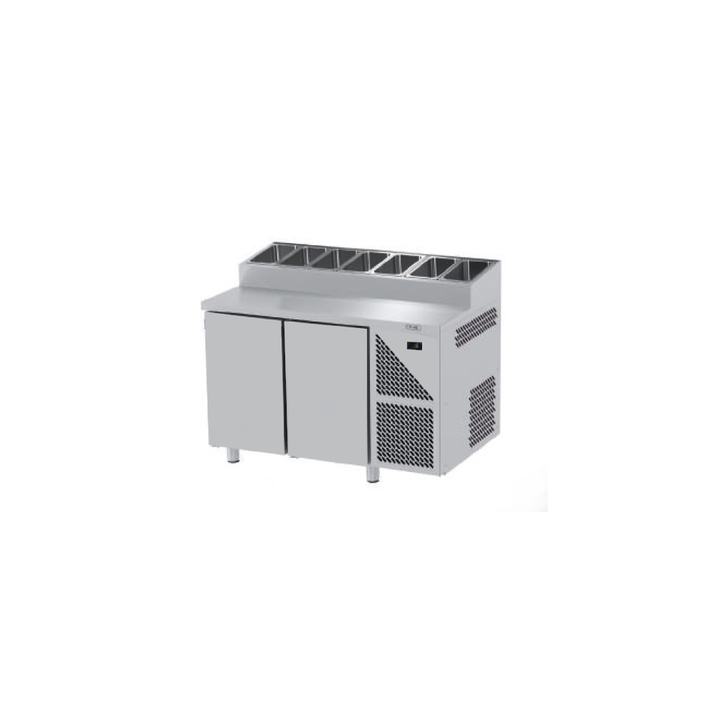 Dimensioni 1430x800x1080mm (altezza 1300mm se con teca in vetro) | +4 +10 C° | 396 Litri | R134a | 30 Watt a 230 V | Peso 156 kg | Bacinelle non incluse | Altezza massima bacinelle 150mm | 1 griglia per porta gn 1/1 600x400mm inclusa