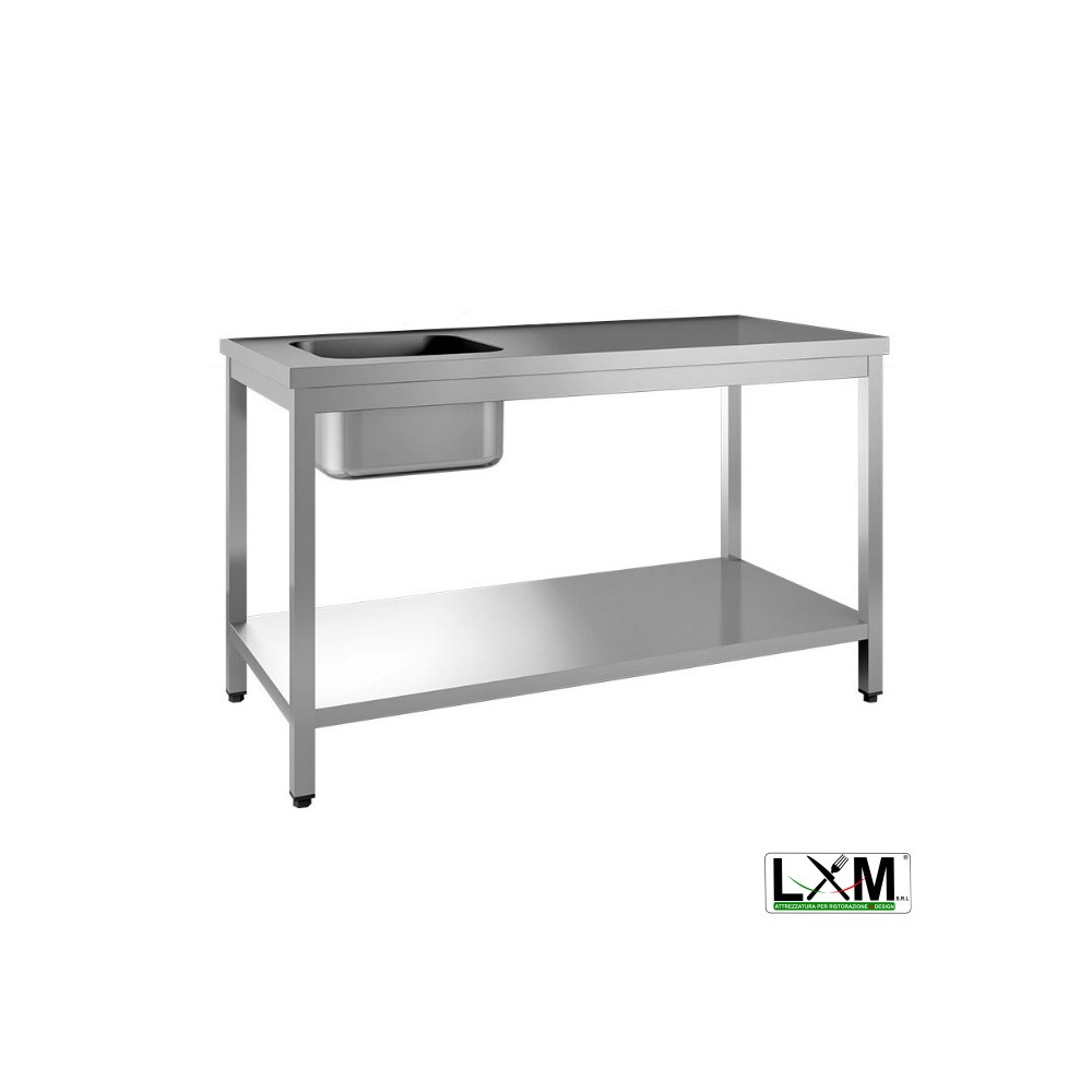 Tavolo da Lavoro INOX - Con Vasca 400x400 a Sinistra - Profondità 700mm